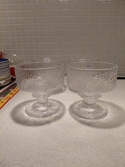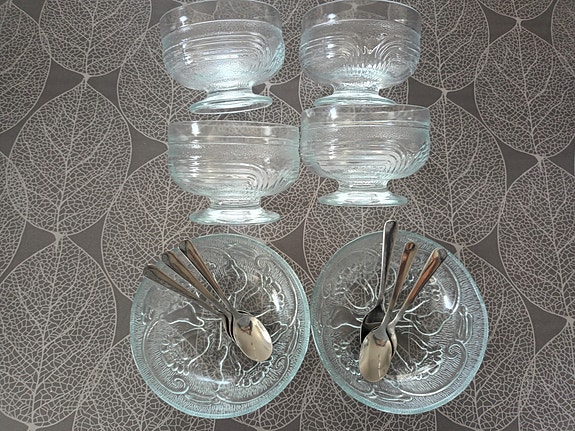 Riihimäen lasi jälkiruokakulhot 6 kpl ja lusikat