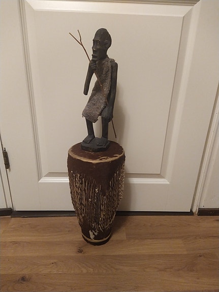Afrikkalainen puuveistos ja rumpu