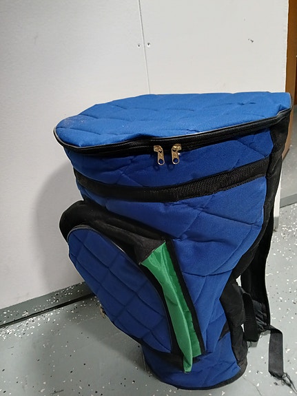 Puinen djembe-rumpu kantolaukulla