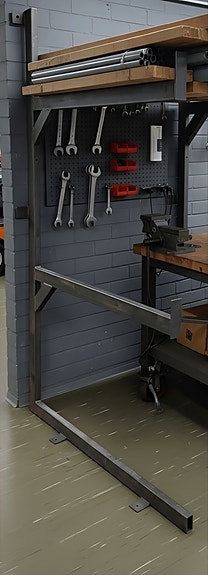 Työkaluseinä, ottolaatikkotelineillä.