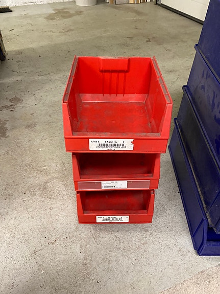 Muovilaatikot hyllylaatikot punainen ja sininen
