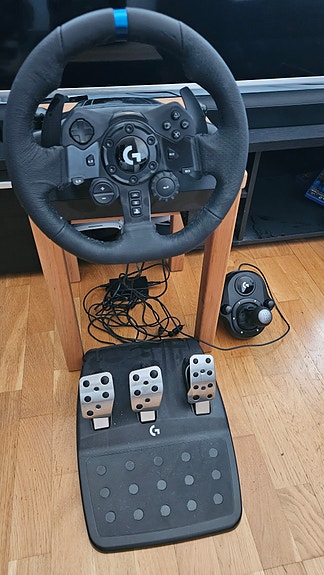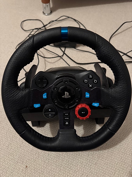 Logitech G29 ajosimulaattorin rattiohjain ja poljinsetti Playseat-ajotuolilla