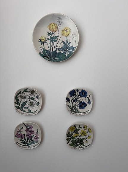 Arabia seinälautaset, 5 kpl eri kukkakuviot
