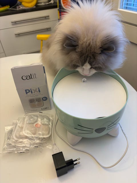 Savic iso kulmikas kissanvessa kannella muovi valkoinen/harmaa