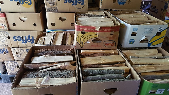 Siirry hakutuloksiinPolttopuita (sekapuita) banaanilaatikossa.