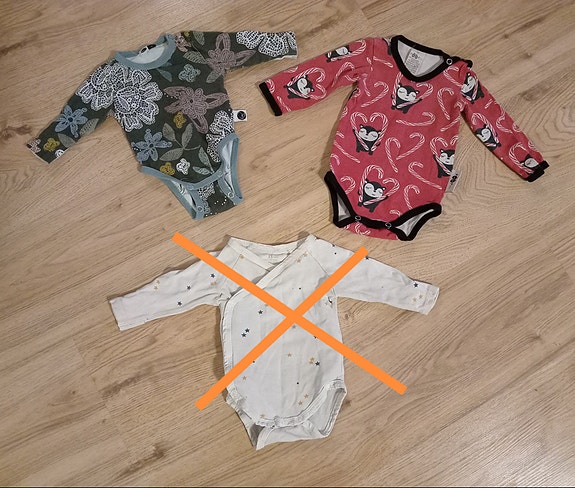Vauvan body on usein esimerkiksi tavallista puseroa helpompi vaate arjessa, sillä haaroissa olevan nepparikiinnityksen ansiosta vaipanvaihto ja pepun peseminen sujuvat helpommin. Kannattaa myös kokeilla nepparikikkaa: Bodyn haaranepparit voi kiinnittää vastakappaleen avulla ylös vauvan olkapäälle kun vaipanvaihdon tai pepun pesun ajaksi. Näin body pysyy todennäköisemmin kuivana ja puhtaana vaihto-operaation ajan. Arjen ja pyykkivuorojen helpottamiseksi vauvan bodyja kannattaa olla kotona runsaasti. Näistä ainakin osan voi hyvin hankkia käytettynä vaikkapa Torista.