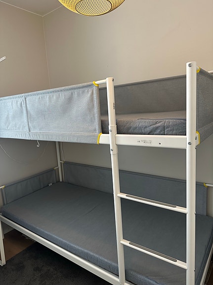 IKEA vitval kerrossänky valkoinen metallirunko harmaat suojareunat