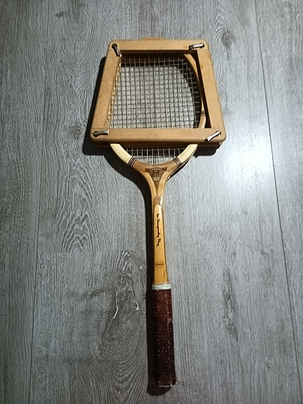 Puinen tennismaila (vintage) puukehikolla (Herttoniemi/Hki)