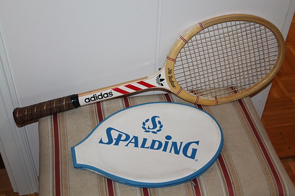 Adidas 70-luku tennismaila + Spalding suojus upea puumaila vintage 70cm