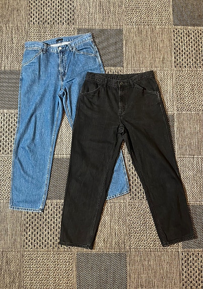 UNIQLO mens 33/32 Wide Tapered High 100%cotton relaxed farkut 2 items
