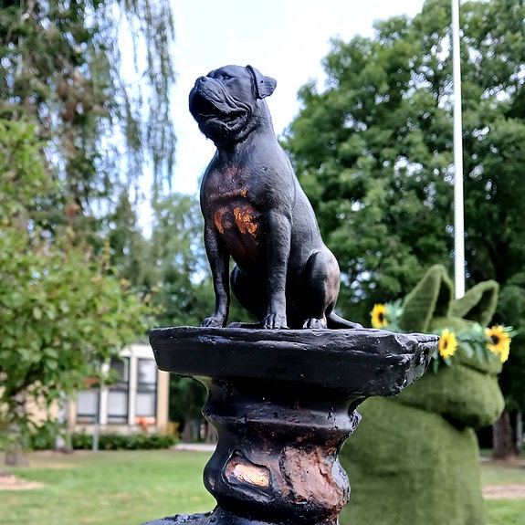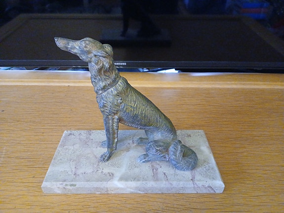 Koira patsas marmorialustalla