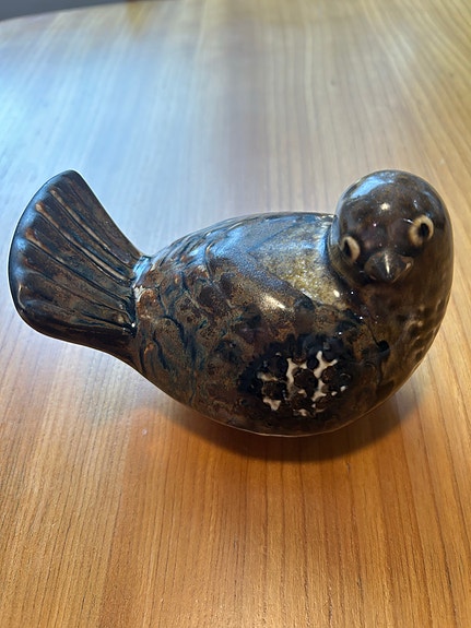 Keramiikkalintu figuriini, Joseph Simon, koriste-esine ruskea