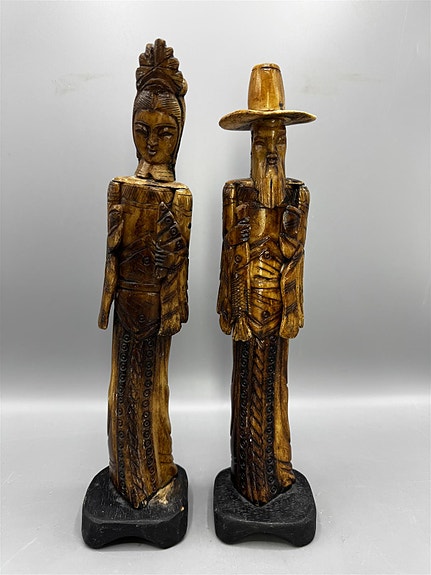 Vintage luukaiverrettu figuriini kalastaja mies ja nainen, Kiina