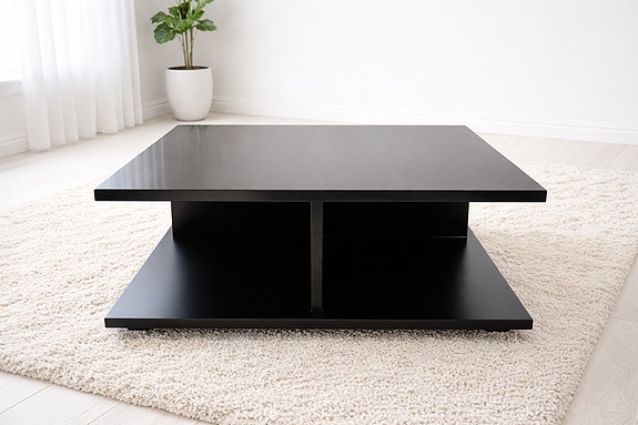 Minimalistinen musta sohvapöytä lasipinnall