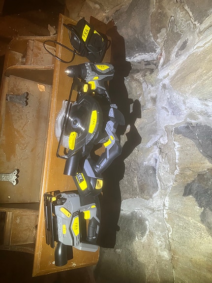 FXA akkutyökalusarja porakone pyörösaha ja pistosaha 18V harmaa keltainen