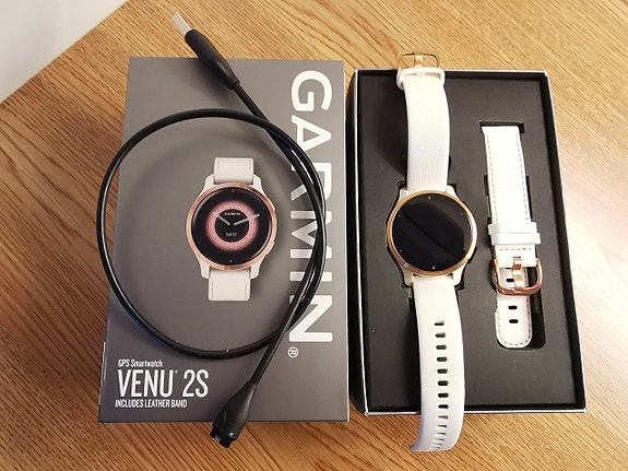 Garmin Venu 2s urheilukello ruusukulta / valkoinen + käyttämätön nahkaranneke