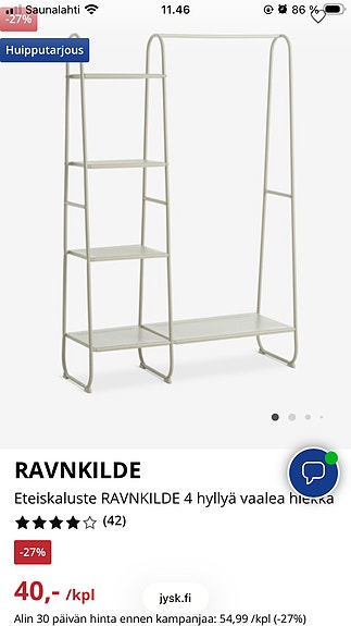 25 €Jysk vaatetanko hyllyillä, JyskTurku, Iso-Heikkilä, Varsinais-Suomi16 tLisää suosikiksi.Avaa ilmoitus