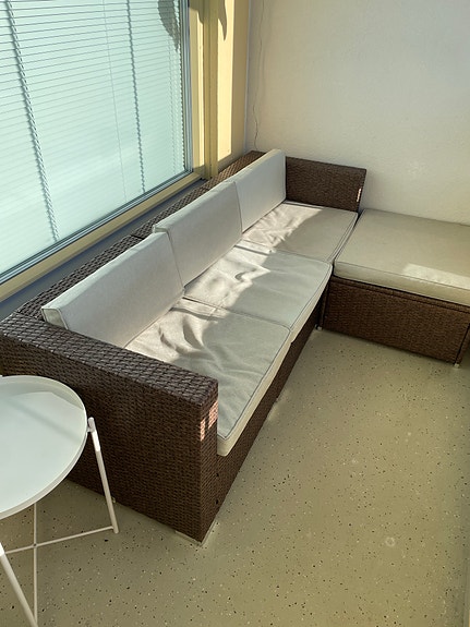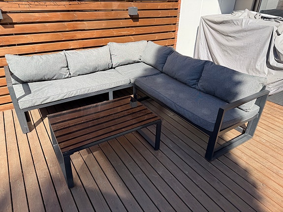 Terassikulmasohva ja pöytä