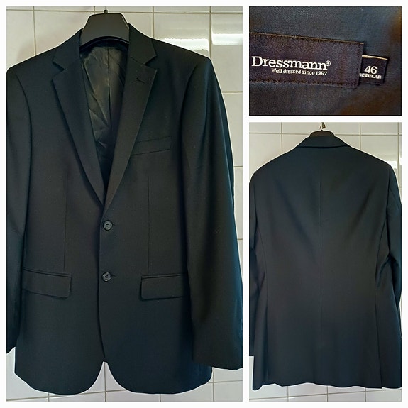 Miesten musta Dressman pikkutakki / puvuntakki / bleiseri koko 46 Regular