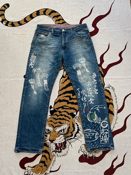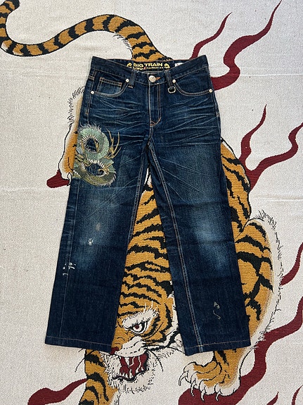 Japanilaiset Big Train -lohikäärmekirjonta farkut Koko 31