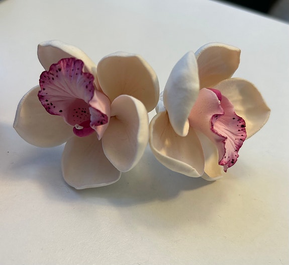 Käsintehdyt orkideakukat hiuspinneissä. Kauniit ja laadukkaat. Setissä 2 kpl.