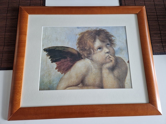 Kehystetty taidejuliste enkeli-aiheella