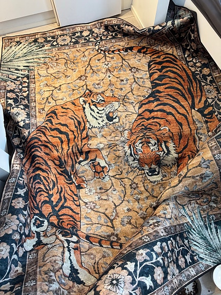Monikäyttöinen beigekuviollinen matto
