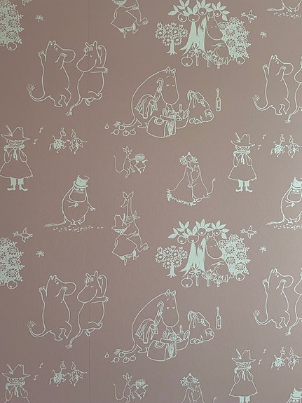Moomin Juhlat tapetti 10,05 m x 0,53 m vaaleanpunainen kuviollinen