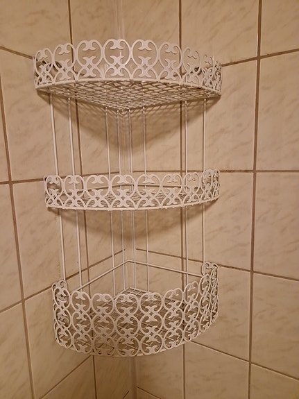 Metallinen valkoinen kulmahylly kylpyhuoneeseen