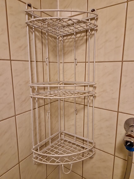 Metallinen suihkuhylly kolmella tasolla