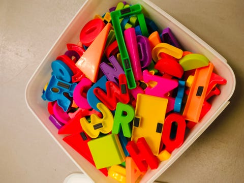 Magneetti kirjaimia ja numeroita ym