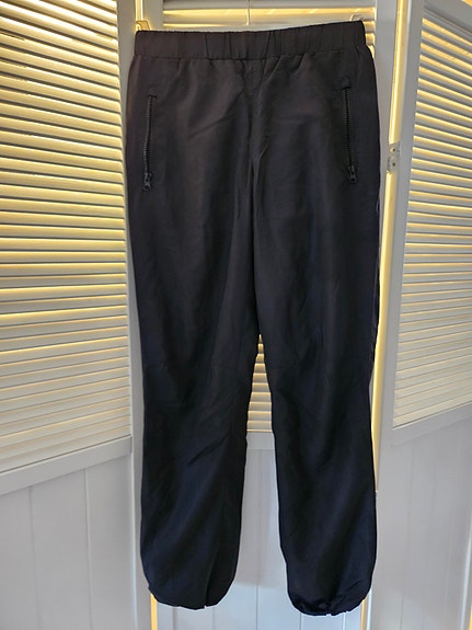 Mustat uudenveroiset ohutvuoriset ulkoiluhousut, koko 158 cm