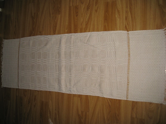 Kaitaliina, värit valkoinen, siniharmaa, beige. P=120cm, L= 38,5cm