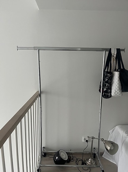 Vaaterekki levennettävä, pyörillä, alhaalla säilytystila