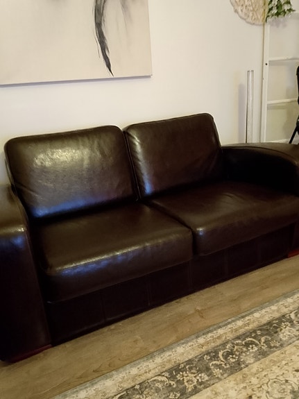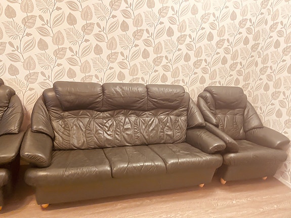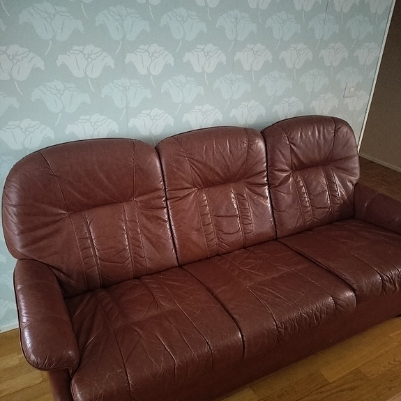 Nahka sohva ja lepotuolit+jalkarahi