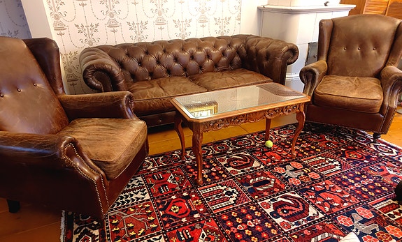 Chesterfield sohvaryhmä, Kensington nahkasohva, Goslar nahkaiset nojatuolit