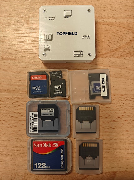 Topfield USB 2.0 muistikortinlukija ja SanDisk CompactFlash‑muistikortit