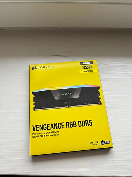 32GB (2 x 16GB) Vengeance RGB, DDR5 6000MHz, CL38, 1.35V, musta/harmaa