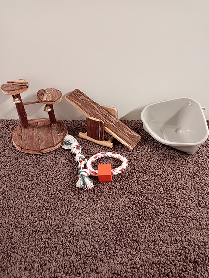 Hamsterin ruokakupit ja juomapullo
