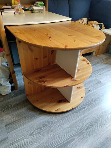 Ulosvedettävä pöytä hyllyllä