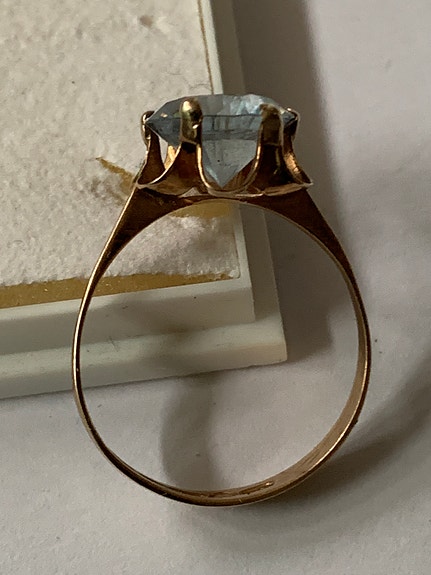 Upea valkokultasormus suurella akvamariinilla – elegantti statement-koru