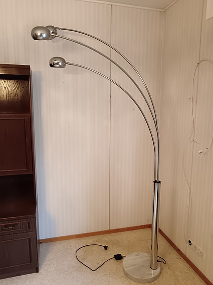 Metallinen kaarijalkalamppu 3‑osainen krominvärinen
