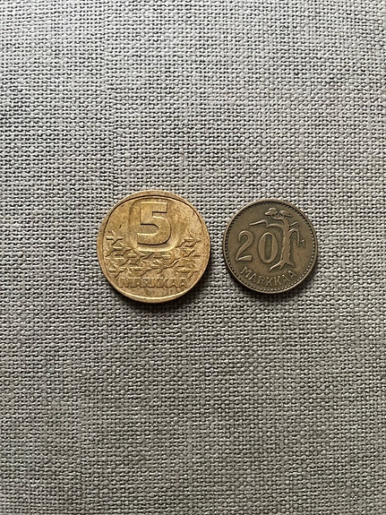 Suomi 5 markkaa ja 20 penniä kolikot