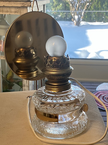 Upea vanha sähköistetty öljylamppu – Riihimäen Lasi / Karhula