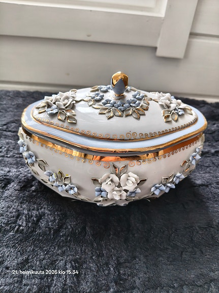 Vintage posliini tupakansäilytys rasia. Todella hieno!