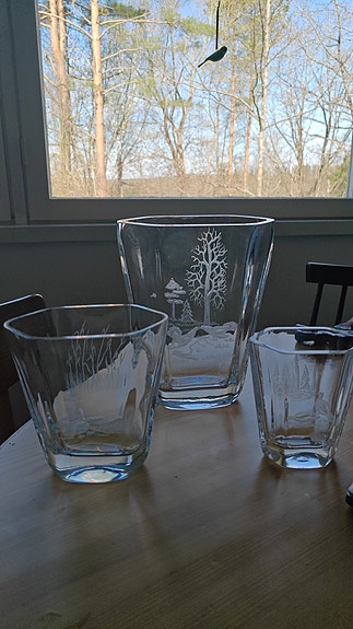 3kpl signeerattu lasimaljakko "von Wright Tony Racov".