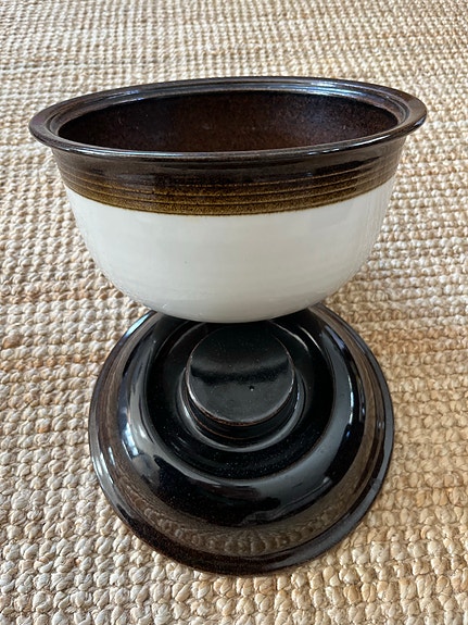 Kermansavi kulho ruskea-valkoinen keramiikka