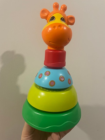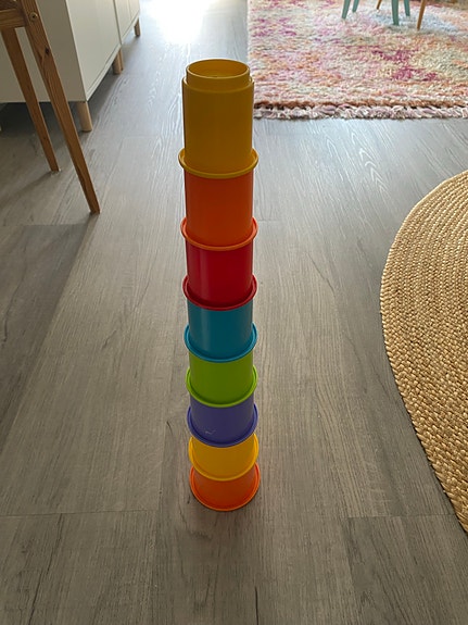 Puinen pinottava lelu sateenkaariväreissä