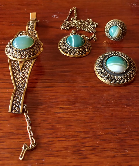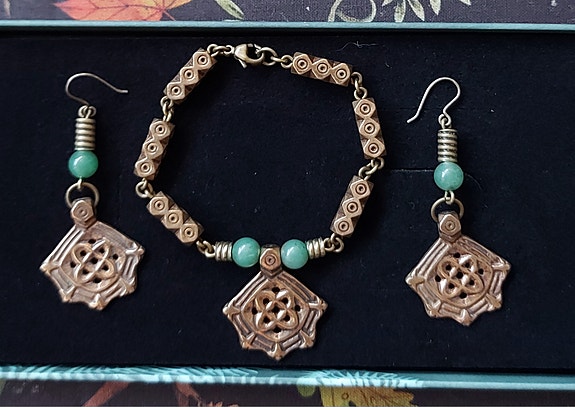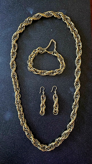 Vintage koruja kaula ranne sormus setti