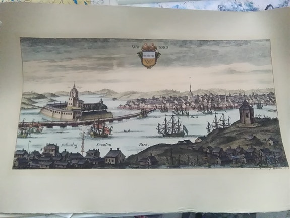 Viipurinlinna vuonna 1709, väritetty käsin, kuparikaiverrus.